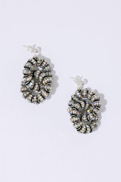 THE PEARL OCTOPUSS.Y MIDI DIAMOND TIRE EARRINGS er laget av sølvbelagte rondellperler i et svart og sølvfarget sebra-mønster, økologiske ferskvannsperler og 925 sølv sterling ørepynt.