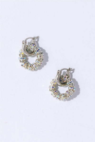 Tiny Créoles Silver er laget med gullbelagte Rondelle og mini Squaredelle perler i glitrende krystaller. Ørebøyler laget i messing med 925 sterling silver og 925 sølv sterling bøyle.