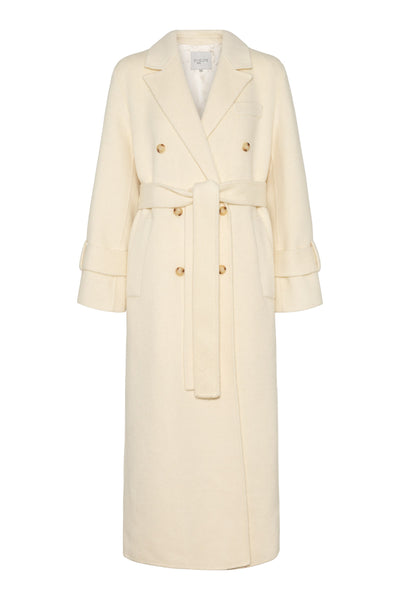 Vi presenterer Saville-frakken, et raffinert tilskudd til kolleksjonen til Envelope, laget av 100 % ull. Denne elegante, lange frakken har dobbeltradet design med skulderputer og belte som gir en flatterende silhuett. Beltedetaljene strekker seg til ermene, noe som gir den et sofistikert preg. Saville-frakken har en klassisk krage og to lommer, og kommer i en delikat brunmelert farge som passer perfekt til høstsesongen.