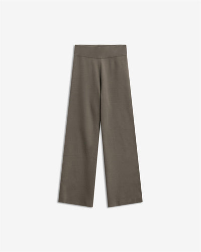 Buksene har en elastisk, bred linning for perfekt passform, en flatterende midjehøyde og en myk ribbestrikket tekstur. Buksens vide ben og ankellange design gir allsidighet og et moderne uttrykk. Buksene er praktiske å trekke på, og er perfekte for bruk hele dagen.