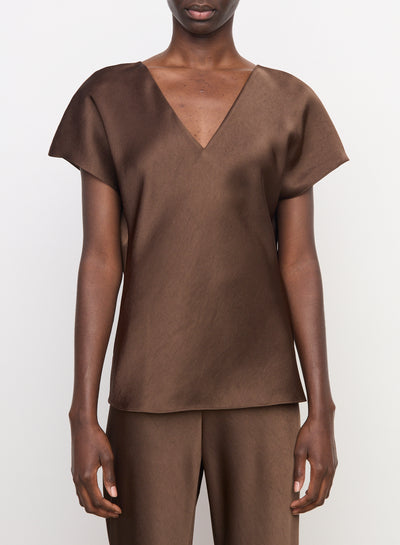 Vince sin klassiske bluse er laget av merkets karakteristiske flytende sateng og har kappeærmer og V-hals.