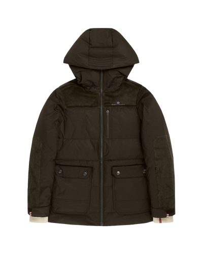 Utformet for de tøffeste vinterforholdene kombinerer Groomer-jakken fransk kordfløyel-forsterkning med økologisk bomullsripstop og 750 fillpower resirkulert gåsedun. Dette nøye utformede plagget gir enestående varme, med ullmansjetter og doble håndvarmerlommer.