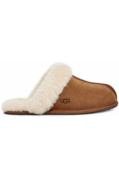 Featuring a fluffy collar, this essential house slipper is cast in soft suede and the UGG signature sheepskin. Finished with a molded rubber sole, it pairs with a cozy robe or matching cashmere sets for maximal leisure.