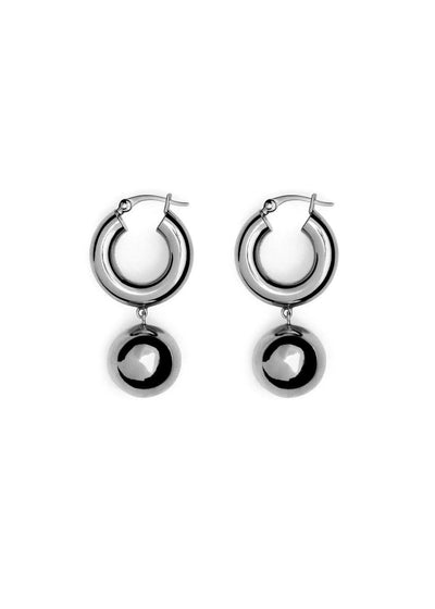 Disse øredobbene er skulpturert av polert sølv med en dinglende ball koblet til bøylen i perfekt størrelse.