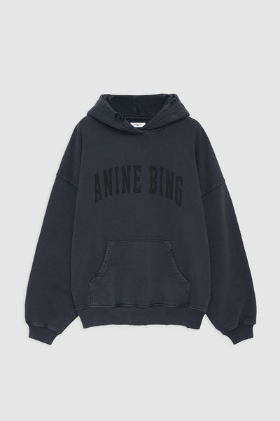 Den har en ANINE BING Sport-grafikk på brystet med autentiske kollegiale bokstaver og subtil sliping langs kantene på hetten, mansjettene og linningen for en vintage-inspirert look. Inkluderer en funksjonell kengurulomme foran.
