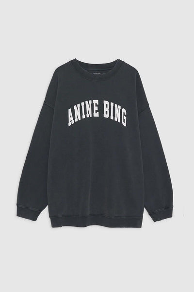 Bestselgeren Tyler Swetshirt er en oversized genser med rund hals laget av 100% organisk bomull i vasket svart. Skjermtrykt med Anine Bing logoen på midten av brystet i kontrast hvitt legger til det vintageinspirerte utseendet. Denne stilen er fullført med slitasje på ribbekanten rundt halsen, ermene og nederkanten.